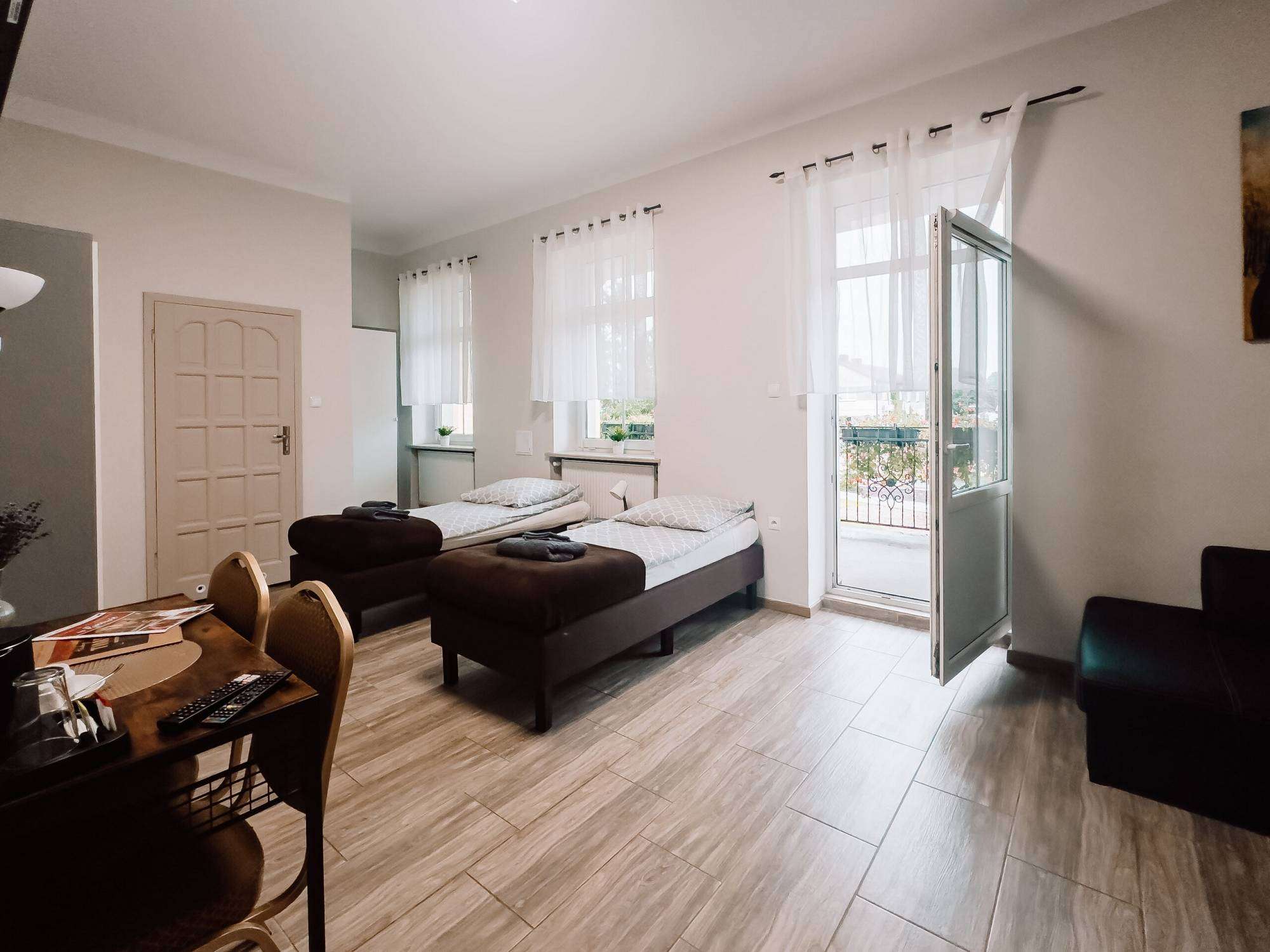 - nocleg w klimatyzowanych domkach lub komfortowych pokojach w Pałacu